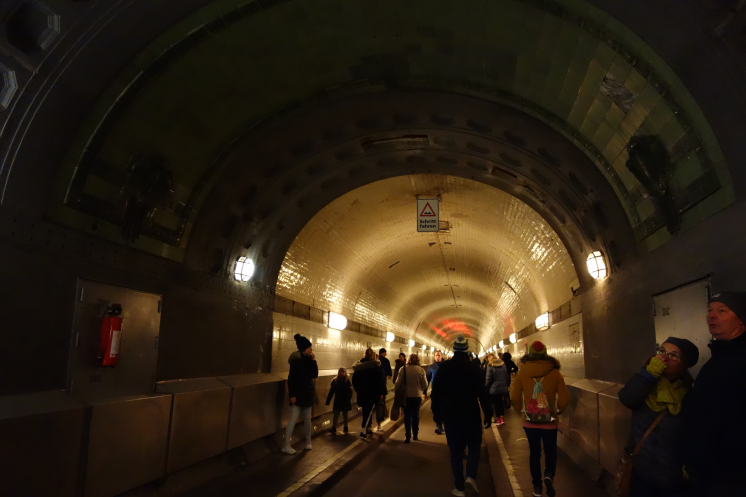 Следующий день я посвятила походу в Альтону, попутно пройдясь по старому эльбскому туннелю. В башнях с лифтами идет реконструкция, но все работает. Для автомобилей движение одностороннее: если есть встречный, его пережидают у входа. А пешие граждане идут по тротуарчикам, по каждому в одном направлении. Велосипедисты едут посередине, но дорогу автомобилям уступают, впрочем, авто не слишком много: для этого есть новый туннель.