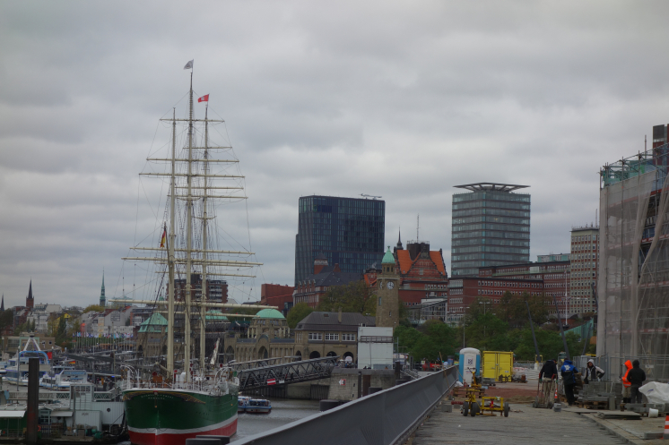 Бродить среди пакгаузов мне не хотелось, так что сфотографировала город с другого берега и пошла назад. Дальше дошла до Фишмаркта, но так как это был не воскресный день, то все было закрыто.