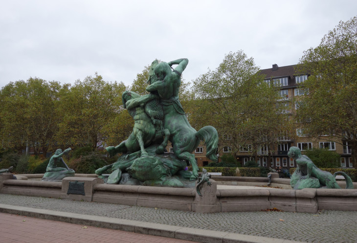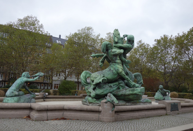 В тот день я находила особенно много километров: Альтона когда-то вообще была другим городом, причем датским. Около ратуши Альтоны стоит роскошный памятник кайзеру, а чуть подальше, на площади Республики, еще более роскошный фонтан, о котором в путеводителе по Гамбургу ничего не сказано.