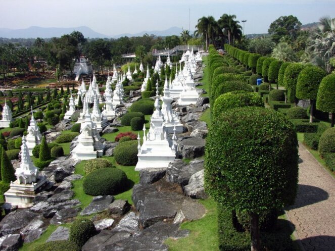 Демонстрационный сад с ландшафтным дизайном в стиле регулярного французского парка. Служит примером объединения культур: фоном для французского парка служат тайские храмы.