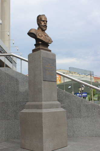 Это один из образцов памятников – путешественников в Омске. Раньше он около Куйбышевского райисполкома был. Судьям он не приглянулся, одно время вообще где-то валялся. Сейчас поселился у спорт-комплекса им. Блинова.