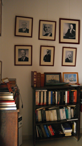 В большой гостиной стоит антикварная мебель конца XIX — начала XX вв., на полках книги об истории Русской эскадры. Стены украшают старинные фотографии, на которых запечатлены Анастасия Ширинская и члены её семьи, командиры кораблей и командующие эскадрой, а также виды Бизерты двадцатых годов XX века, какой она впервые открылась русским морякам. За каждой фотографией стоит целая история, чья-то судьба, какое-нибудь событие... Лариса Богданова очень интересно рассказывает о жизни русских моряков в эмиграции, о самой Анастасии Ширинской.