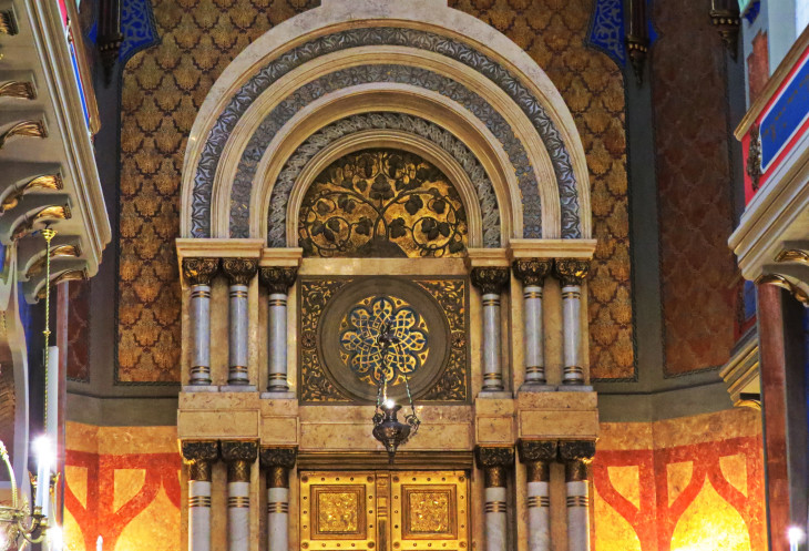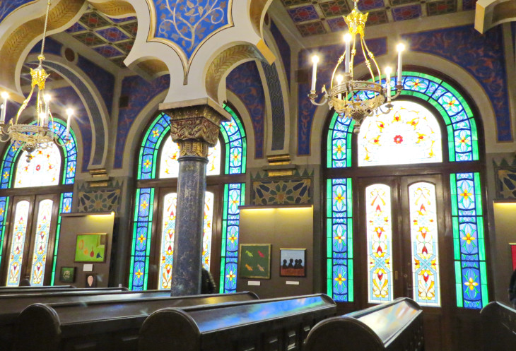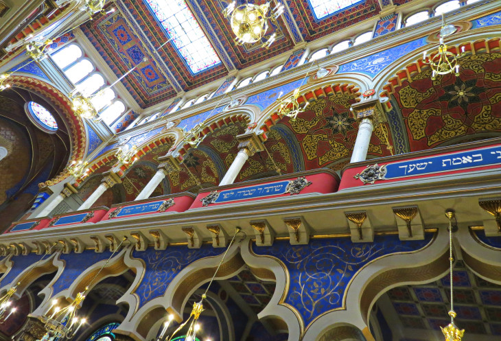 Над главным входом в Юбилейную синагогу, располагается большая арка, вдоль которой написана цитата из Пророков: «Разве у нас не единый Отец? Разве не сотворил нас единый Бог?». Очень эффектное место, ничего подобного не видела раньше.