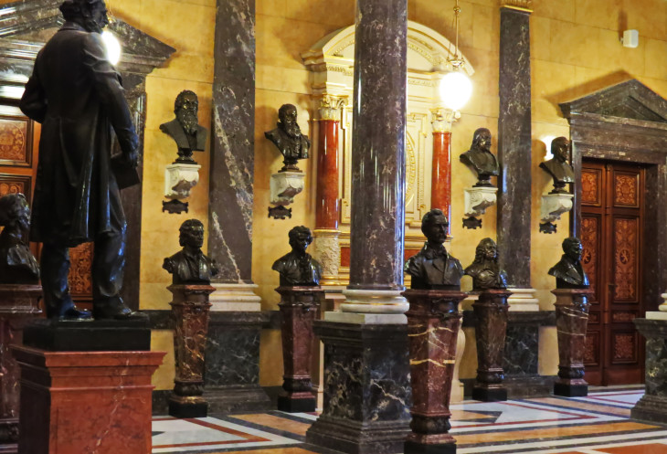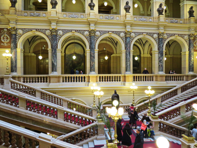 Восхитил интерьер здания: настоящий дворец! Лестницы оформлены картинами, принадлежащими известным художникам, холл украшен скульптурами Людвига Швантхалера.