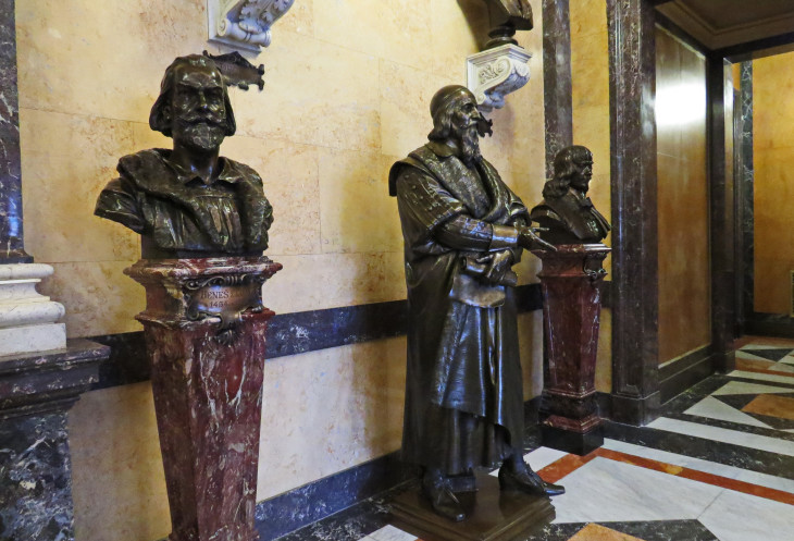 Ещё условно открыт пантеон, где расположены скульптуры известных людей разных эпох. Это люди науки, культуры, общественные деятели. В эти залы не пускают, но заглянуть туда можно.