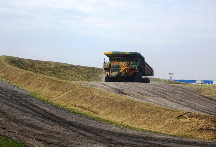 - самый большой карьерный самосвал имеет грузоподъёмность четыреста пятьдесят тонн. И мы его сегодня увидим.