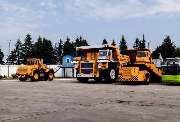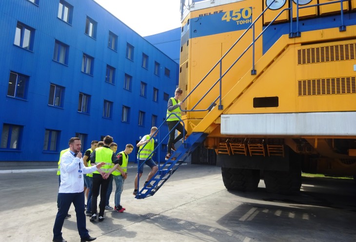 Самая интересная часть экскурсии находилась на площадке возле цеха по производству сверхтяжёлых машин. На ней стояло несколько образцов. Сфотографироваться можно было с любым представленным здесь БЕЛАЗом.