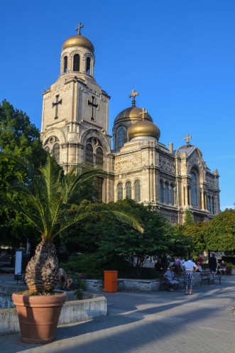 После Балчика и монастыря Аладжа мы заехали в Варну. Разумеется, день уже начал клониться к вечеру и на знакомство с городом у нас оставалось всего несколько часов. Потому, первым делом, мы отправились к главному храму Варны – Успенскому собору.