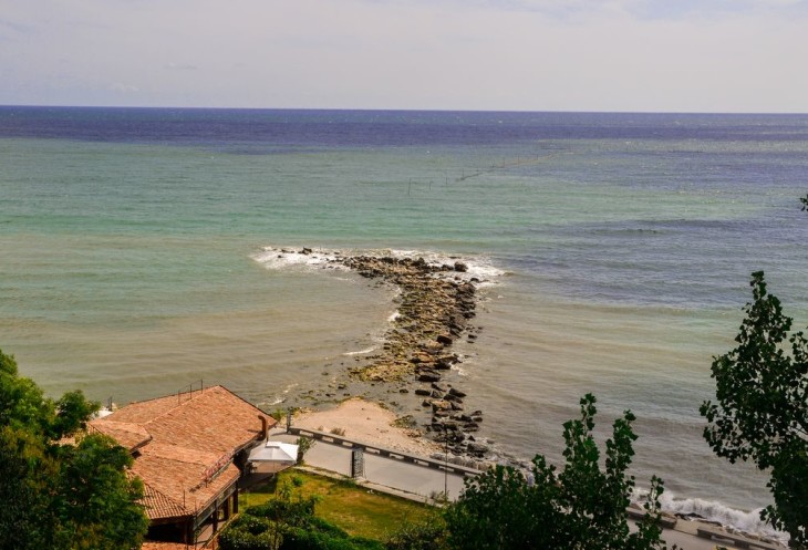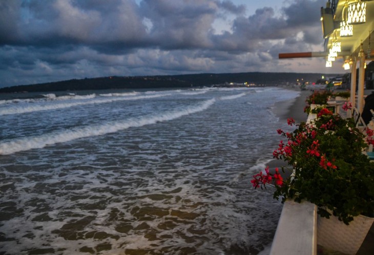 И тут мы попали. В хорошем смысле этого слова. Терраса кафе действительно выступала над волнами. А на море в тот момент начинался небольшой шторм. От грохота волн закладывало уши, а от вида этой безудержной мощи прямо у твоих ног нельзя было оторвать глаз. Мы и не стали.