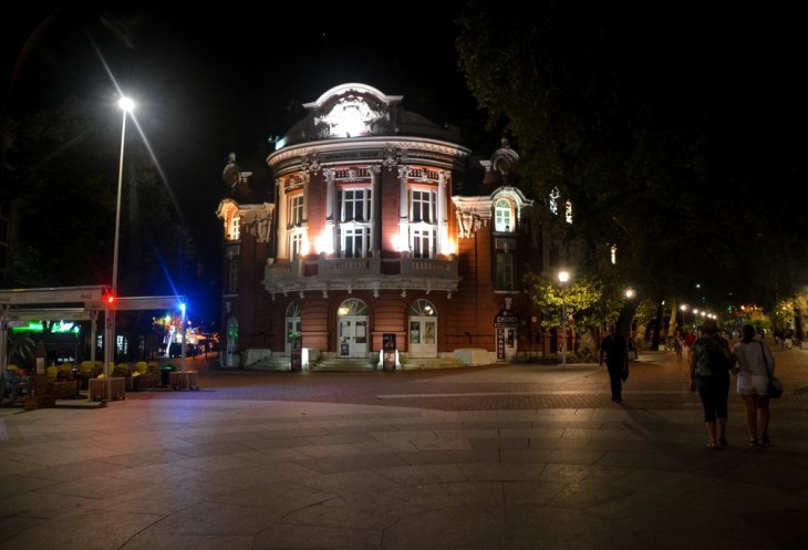 Далее мы пошли по пешеходной части Варны, мимо Городского Драматического театра и вскоре снова вышли к Успенскому Собору, недалеко от которого оставили машину. Ночью, подсвеченный прожекторами, он не менее красив, чем при солнечном свете.