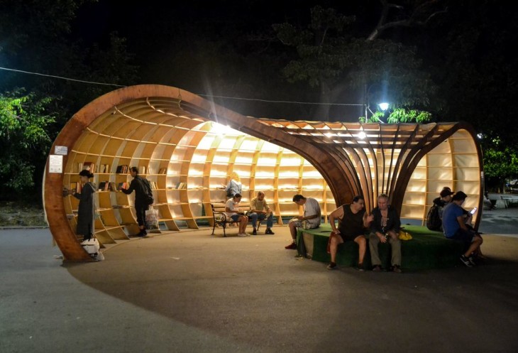 Оригинальное строение, так же расположенное у входа в парк, я вначале принял за остановку. Но при ближайшем рассмотрении оно оказалось библиотекой. Свободной библиотекой, где любой желающий может взять книгу совершенно бесплатно.