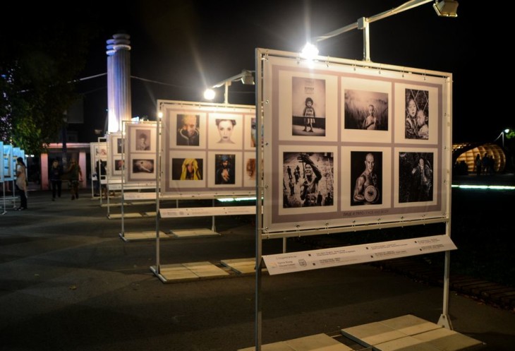 Прямо на входе в Приморский парк была организована открытая фотовыставка. Сейчас, по темноте, все работы подсвечивались и выставка, выступая ярким светящимся пятном на общем фоне, привлекала к себе внимание.