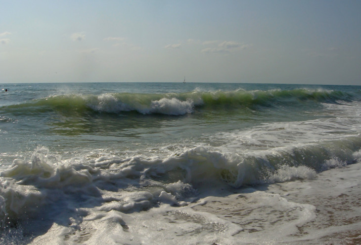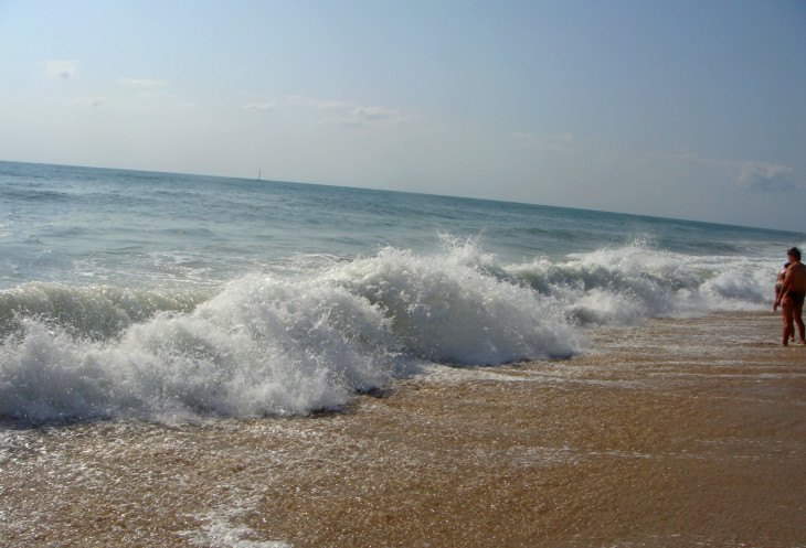 Я дважды отдыхала на Золотых песках (наверное, там надо ставить "в", но с песками у меня этот предлог не вяжется) - в самом конце августа 2008 и в сентябре 2010. И я должна признать, это лучшее Черное море из всех, какие только могут быть. Именно из-за песков, ну и сухого климата. Купаться одно удовольствие. Бродить по берегу - другое удовольствие. Смотреть на всё это дело - третье.