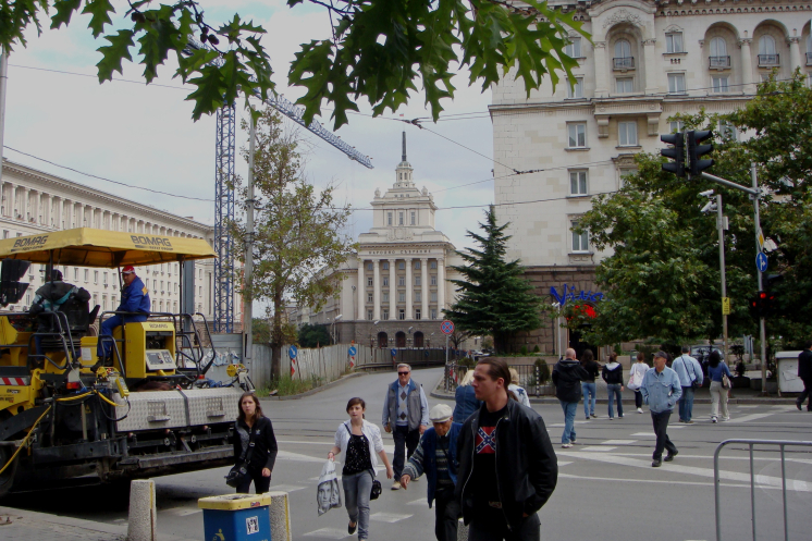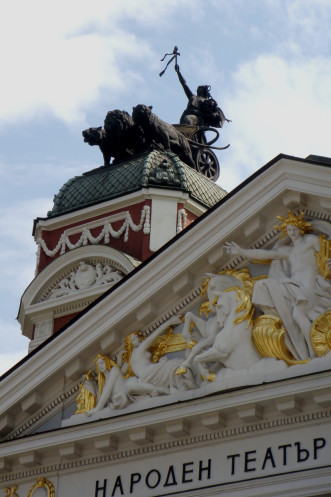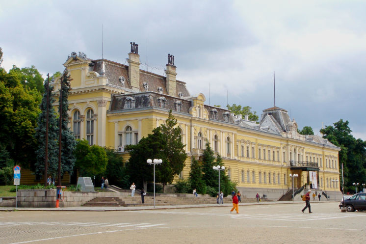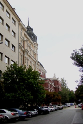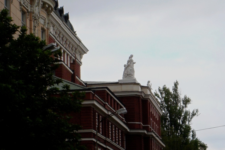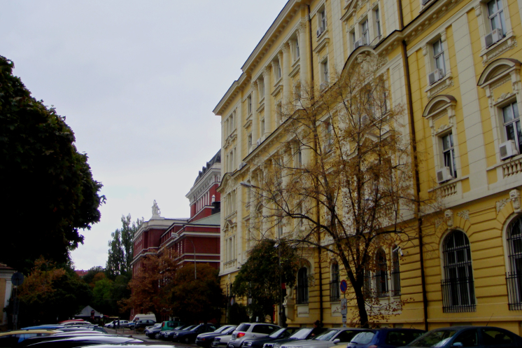 Далее пора было обедать, так что мы пошли, пошли... скорым коротким маршрутом, через переплетение советского архитектурного наследия и местами эклектики начала 20 в., пробежали мельком театр Ивана Вазова, где-то как-то сбоку...