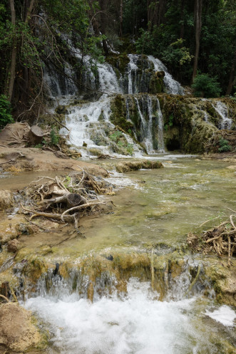 Вода в питьевых фонтанчиках приятная на вкус, холодненькая. Желающие набирали с собой, но у меня был достаточный запас. Виды красивые, но толпы, толпы… Особенно поразило, что в одном месте разрешено купаться, и народ, несмотря на неудобный спуск и мелководье, лезет в воду. Конечно, было довольно жарко, но удовольствие окунуться довольно сомнительное, да и вещи бросить без присмотра страшновато. Из-за обилия освежающихся трудно сделать красивые снимки водопада: в кадр все время попадают чьи-то телеса. Вообще со снимками напряжно: везде вид перекрывают какие-нибудь ветки, хотя вроде оборудованы смотровые площадки. Пожалуй, лучший вид был сверху с дороги, но выйти там нельзя, автобус только замедлил ход.