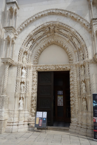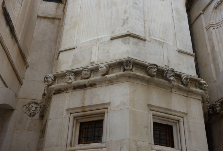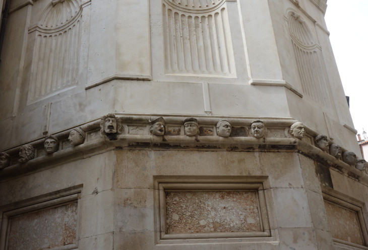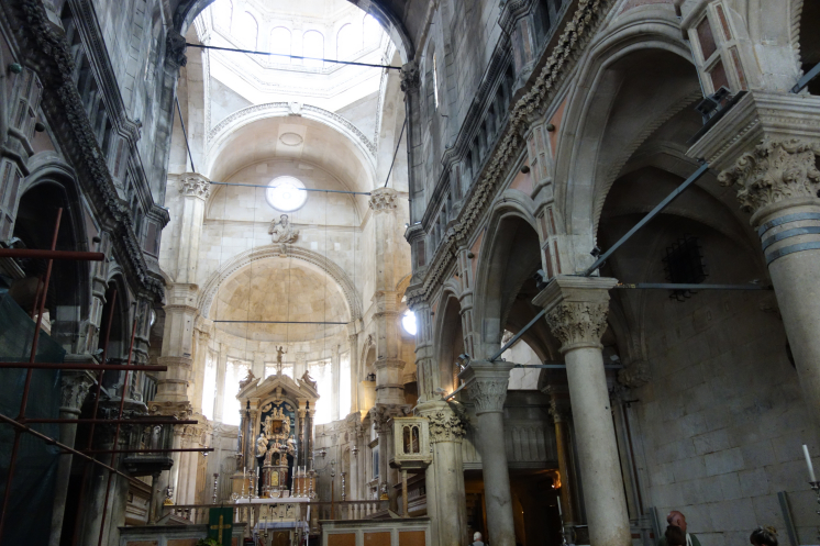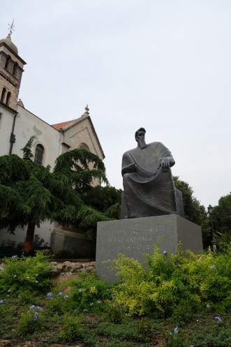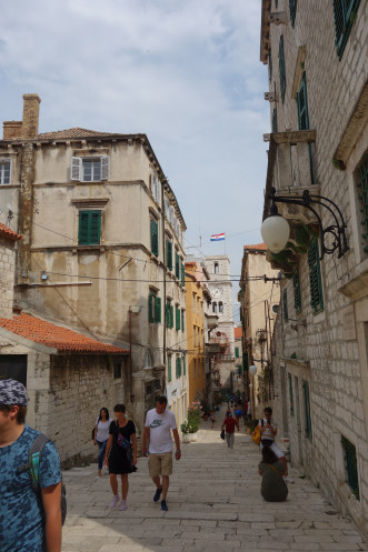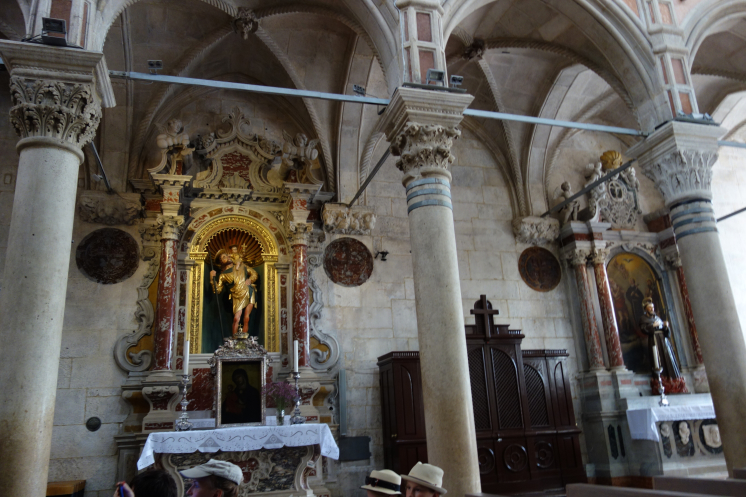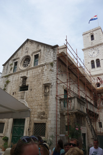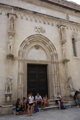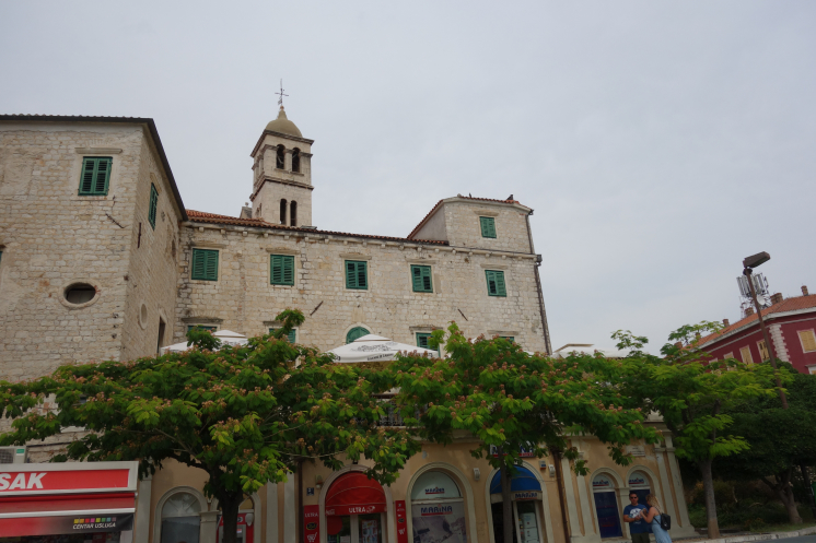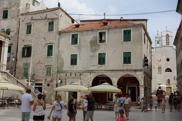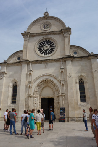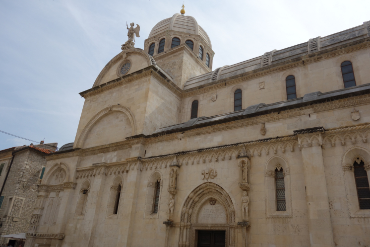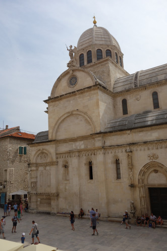 В Шибенике мы довольно резво прошлись по старому городу, зашли в пару церквей и главную цель путешествия — кафедральный собор. Впечатляет: вроде все строго, без обилия позолоты и витражей, но красиво. И украшающие внешнюю стену скульптурные головы сограждан Далматинца смотрятся оригинально.