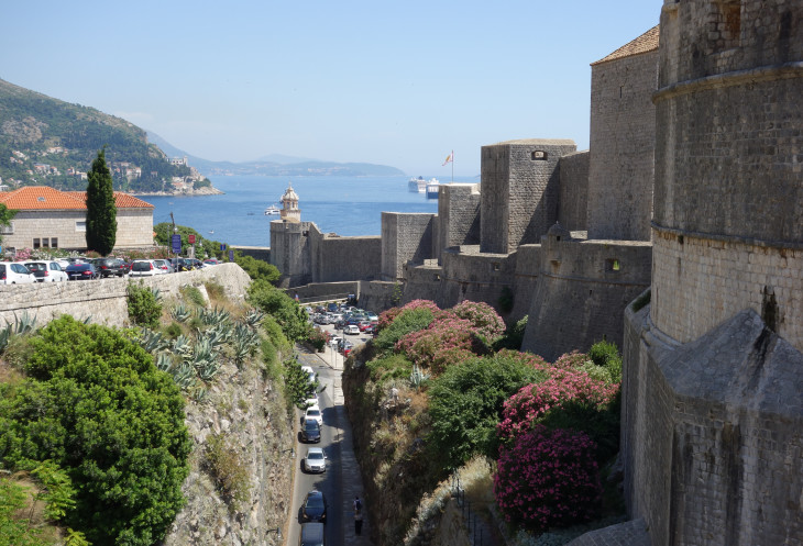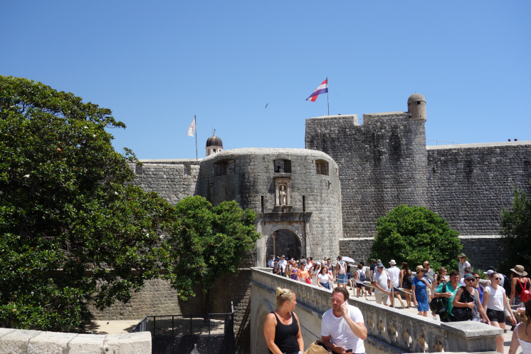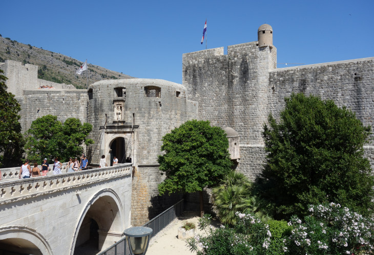 Для того, чтобы попасть в Дубровник, обязательно взять с собой паспорт: дважды приходится пересекать границу с Боснией и Герцеговиной. Этот клинышек Боснии разбивает Хорватию на две части еще со времен Дубровницкой республики: так жители отгородились от Венеции. Но продали только землю, а прибрежные воды нет, поэтому сейчас строится мост с опорами на многочисленных мелких островах, чтобы соединить обе части страны. Нам повезло: границу мы пересекли довольно быстро. Причем боснийская сторона собирала и штамповала паспорта, а хорватская нет (обратно так же).