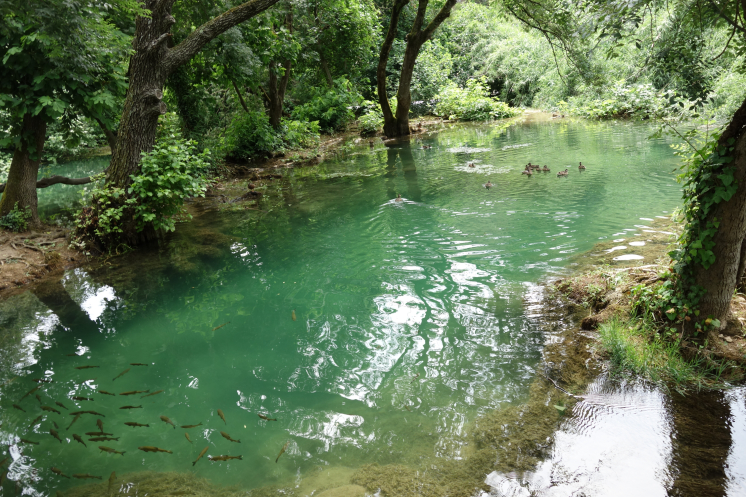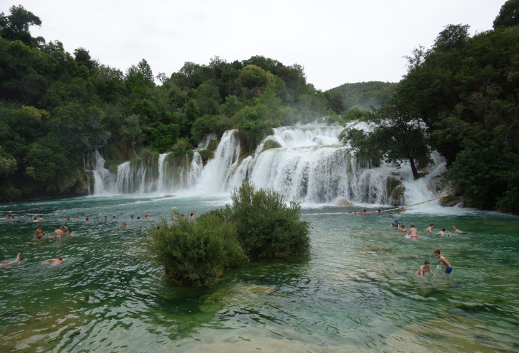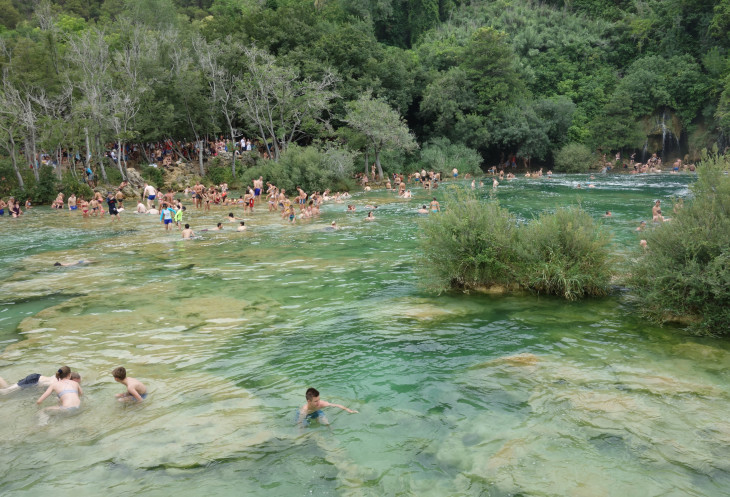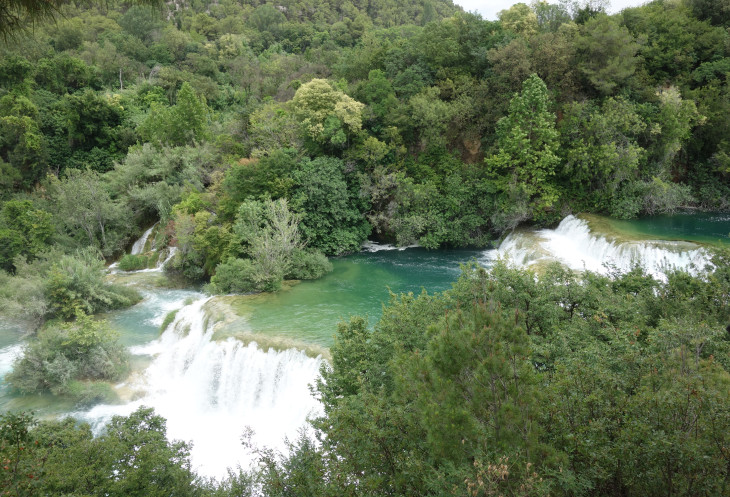 Путешествие к водопадам реки Крка в «список мечт» не входило, но это была одна из немногочисленных групповых экскурсий, которые предлагало с трудом найденное мной агентство. Так что я решила съездить, тем более, это гораздо ближе Плитвицких озер и в комплект входил Шибеник со знаменитым творением Юрая Далматинца. Везла та же сопровождающая, что и на озера. Но здесь она просто показала направление и назначила место и время встречи. Обошли мы тоже далеко не всё: в этом природном парке предлагаются поездки на остров, где расположен монастырь, да и пешеходных троп довольно много. После прогулки прошлась еще по реставрированной «деревне ремесленников» с мельницей, «стиральной машиной» и т.д.