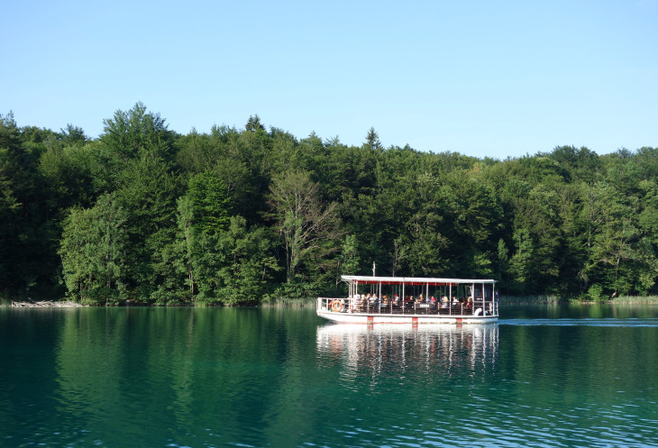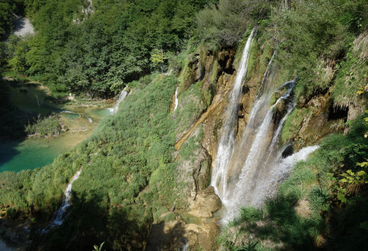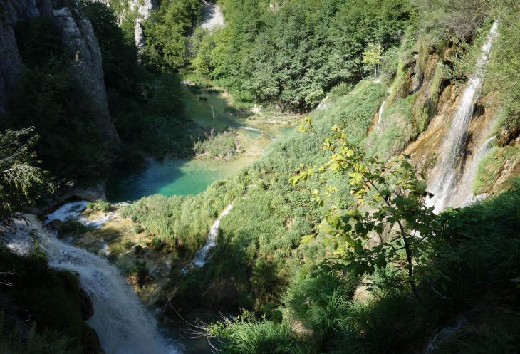 «Хладну вечеру» я заказывала еще раз: с Плитвицких озер мы вернулись за полночь. Ехать с Макарской ривьеры туда далеко, а отправились мы в 11 часов (прибыли около 16): турфирма решила, что к вечеру народу там будет поменьше. По дороге еще собрали народ с Северной Далмации. Если верить гиду, доступ к озерам изрядно ограничили: неорганизованные туристы могут попасть только по забронированным за 3 дня через интернет билетам, организованные тоже записываются заранее. Территория большая, у нас было запланировано посещение только нижних озер. Как сказала сопровождающая: «Даже не знаю, где красивее». Для начала на карте она показала наш будущий маршрут, кроме пешей прогулки, включавший поездку на кораблике и автобусе. Сначала все шли вместе, а потом на одной развилке сопровождающая послала всех к водопаду и сказала, что придет за нами. И в какой-то момент я обнаружила, что, кроме меня, из группы у водопада остались только 2 девушки, которые вдохновенно фотографировались в разных позах на фоне водопада. Я растерялась: то ли бежать искать группу, то ли уж держаться этих девушек. Девушек отсутствие группы не смутило, они позвонили сопровождающей, которая сказала, что надо двигаться по указателям к пристани, и продолжили фотографироваться на фоне каждого куста. У меня нервы не такие крепкие: если сопровождающая бросила часть группы у водопада, она могла и у пристани не дождаться, уехав с остальными на кораблике, а куда там двигаться дальше, я не знала. Так что впечатления от красот были отравлены. Ну и видела я места и покрасивее. Нет, там тоже очень здорово, но в Норвегии водопады выше, в Греции вода зеленее, в Байкале прозрачнее… Отмечу налаженную инфраструктуру: где нужно, сделано ограждение, проложены мостки, поставлены кафе/туалеты. Даже wi-fi бесплатный работал почти на всей территории: я отправила первые фотки на родину, пока там еще ночь не наступила (разница летом 5 часов). В озерах немеряно непуганой рыбы, утки всякие. Кое-где народ на лодочках катается. Вообще, славное место, хотя народу многовато даже в вечернее время. Ну и обошли мы далеко не всё. Но мечта исполнена, пусть и несколько запоздало.