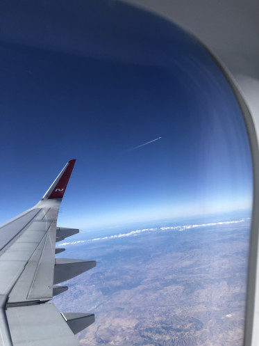 А дальше ничего не ожидалось, тем было интереснее - яркое солнце над облаками: идеальное сочетание белого, голубого и необыкновенной синевы, удачно дополняемых серо-красными цветами нашего борта - Северного ветра.