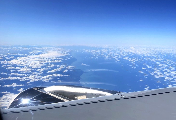 При развороте самолета белое-белое плотное воздушное одеяло удалось рассмотреть поближе, как всегда, когда почти ныряешь в эту «пуховую перину», захватывает дух