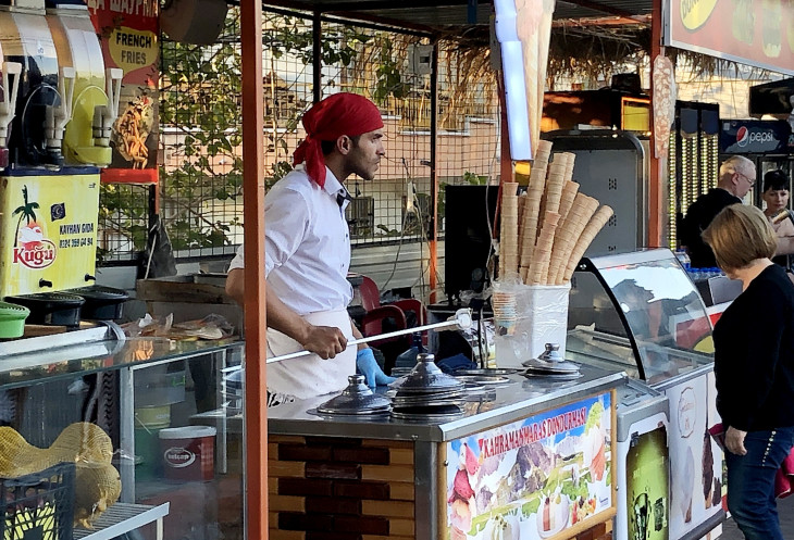 К такому сразу так и тянет подойти... Впрочем, мороженщики в Турции - это отдельная история, в этот раз я решила непосредственно в неё не ввязываться, дорожа чистым лицом, руками и одеждой.