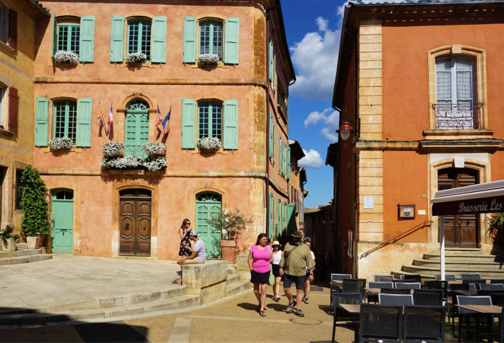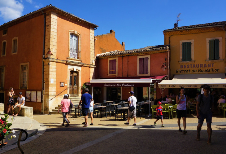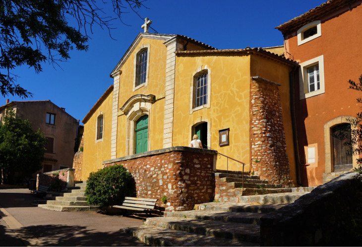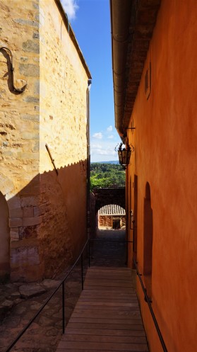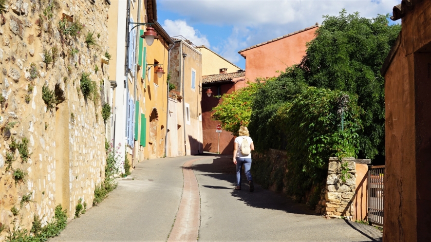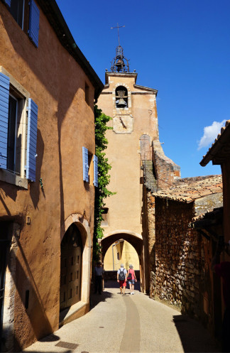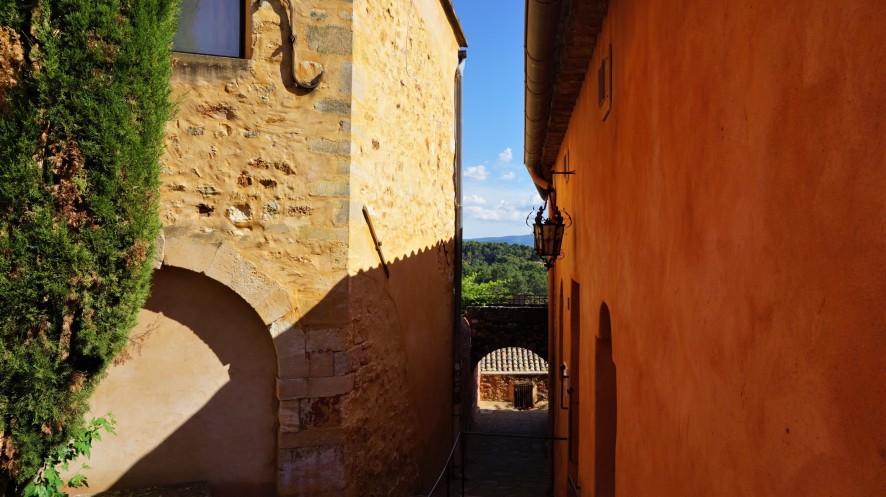 Это старая и почтенная деревня, и ее архитектура красноречиво говорит об этом. Большинство построек относится к XVIII веку, когда из-за добычи охры деревня процветала. В Русийон мы вошли по узенькой улочке.