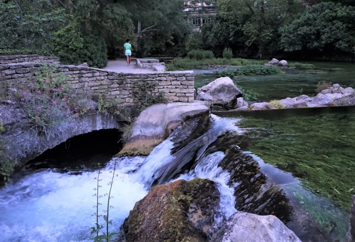 Река здесь имеет пороги и ведет себя бурно, как бы говоря, что совсем близко до настоящего чуда, которое она может явить всем желающим. До самого источника, действительно, близко. Но настоящий фейерверк Сорг, ради которого собираются толпы туристов, устраивает только весной, поэтому, а еще и потому что темнело быстро, туда мы не пошли.
