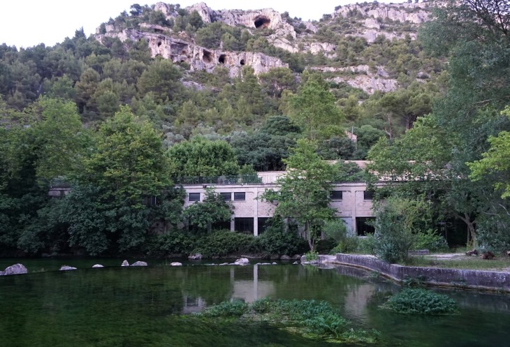 Чем не римское сооружение? А вот, не римское. Это акведук Гала (Pont-aqueduc de Galas) был построен в середине XIX века, когда прокладывали ирригационный канал, и нужно было пересечь реку Сорг. Акведук исправно работает до сих пор. Можно даже подняться наверх, но у нас не было времени. Не хотелось совсем затемно оказаться в деревне, а идти нужно было еще километра полтора.