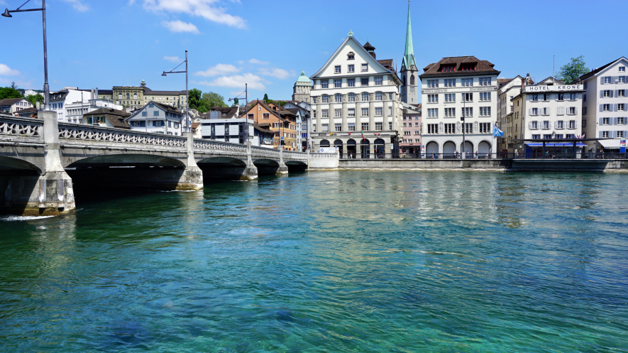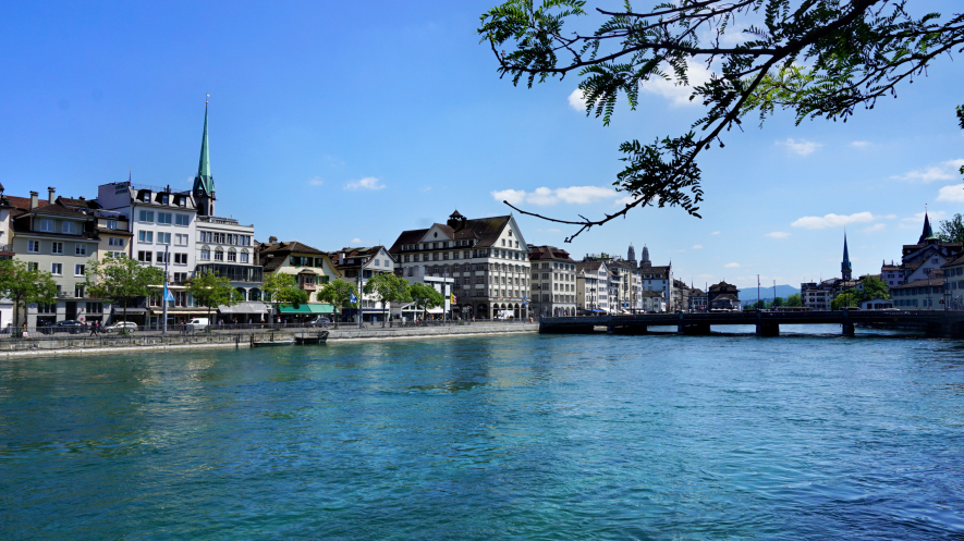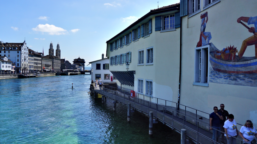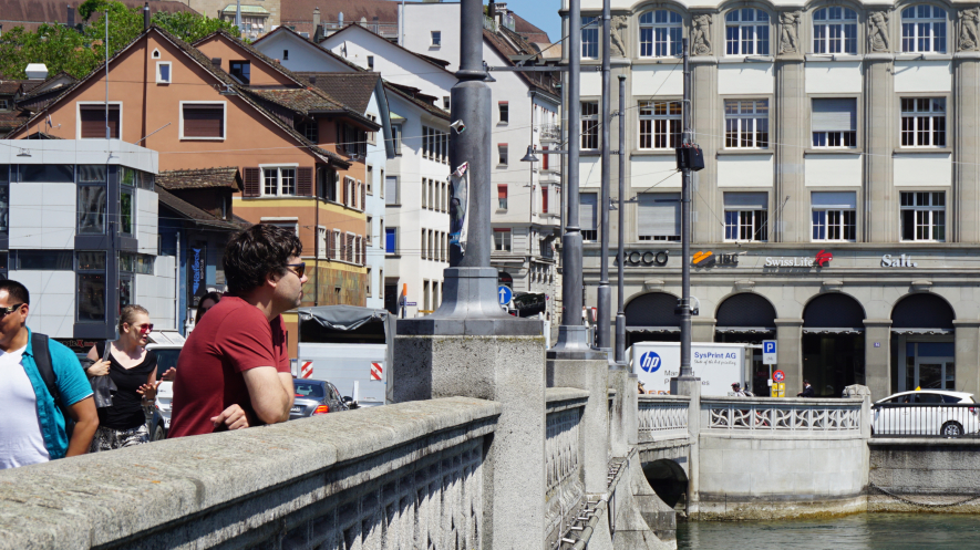 И вот, наконец, аэропорт Цюриха. Гид встречал нас клубникой. Все самолеты приземлились по расписанию. Добрались из аэропорта, и, как договаривались, отыскали наш микроавтобус, который тоже прибыл без задержки, у ж/д вокзала. Затоварились продуктами в близлежащем супермаркете, перекусили на парапете набережной и пошли гулять по Цюриху.