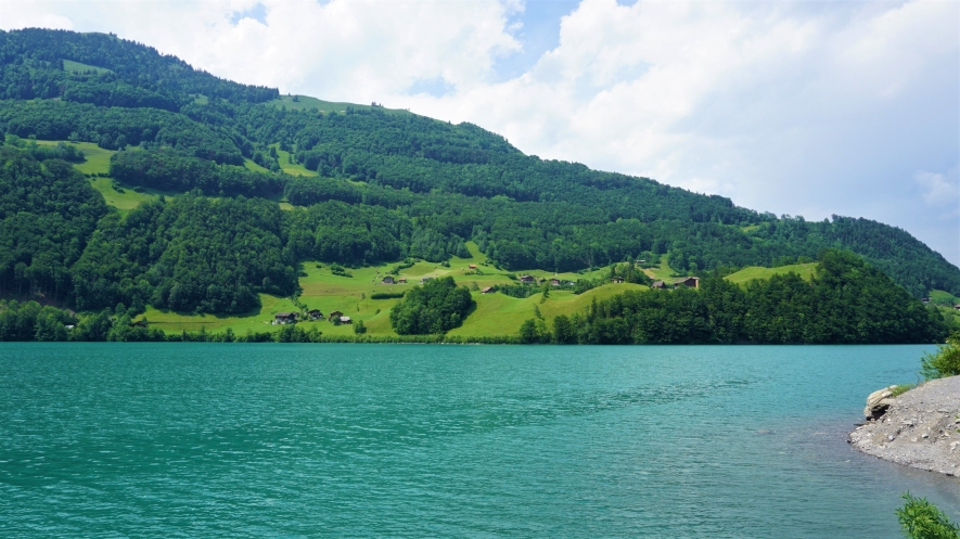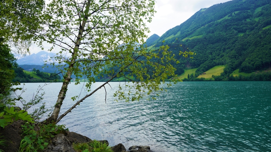 Место нам выделили на полянке с видом на Фирвальдштетское, оно же Люцернское, озеро. До хозблока близко. Здесь не только душевые, но и кухонный блок со столовой, где мы будем завтракать утром. А вечером у нас в планах провести время у озера. Быстро ставим палатки.