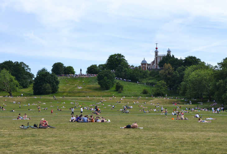 Огромное поле между морским музеем и обсерваторией было усеяно людьми, как пляжи Испании. Люди, расположившиеся кто под деревьями, кто под открытым небом наслаждались теплой погодой и летним солнцем. Температура в этот день перевалила за 30 градусов, так что сравнение с Испанией более чем актуально.