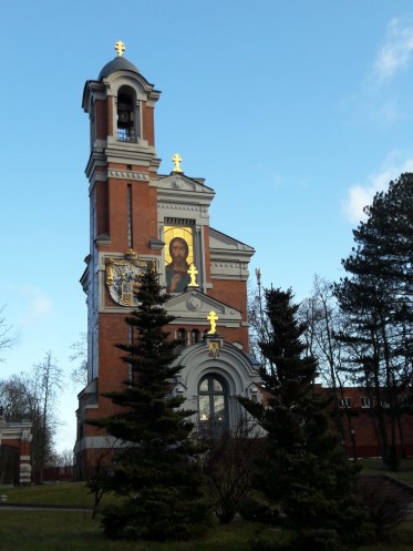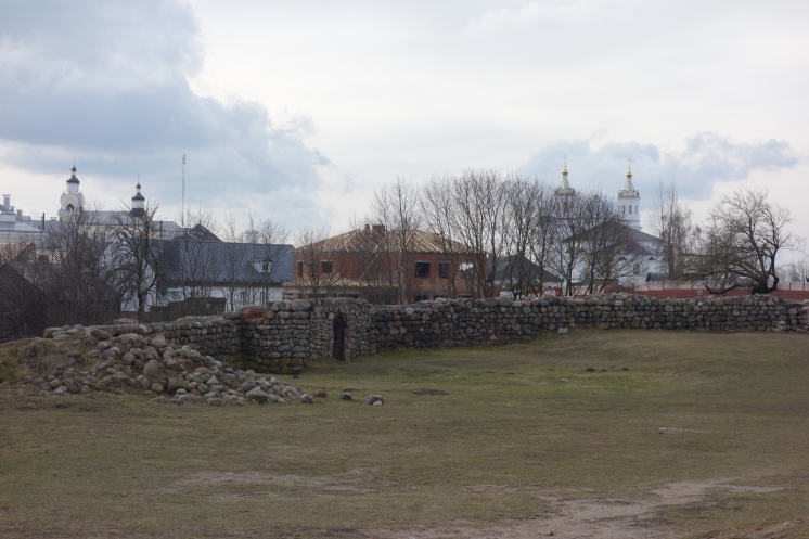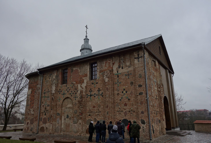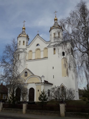 После позднего завтрака поехали знакомиться с городом. Вот в Гродно кое-что старинное сохранилось, вплоть до Коложской церкви 12 века. Правда, одна стена церкви съехала в овраг и ее заменили на деревянную, но церковь действующая.