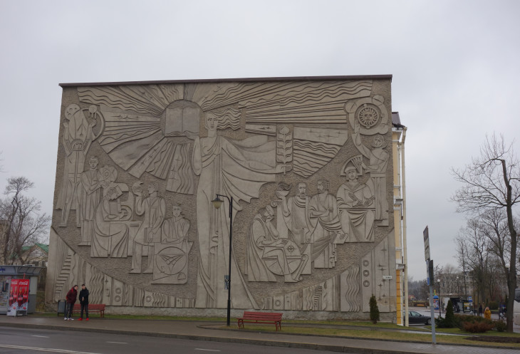 На обратном пути забрали в центре города тех, кто остался в Минске. Город очень пострадал в войну, потому большая часть центра застроена в 50-е годы в соответствующем стиле. И эта застройка не изуродована точечными вкраплениями современных высоток. Не зря фильм «Стиляги» снимали не в Москве, а в Минске: там не нашли подходящей натуры. Современных интересных зданий тоже много, но они стоят отдельными микрорайонами, не портя вид. Реклама тоже умеренная, по большей части не коммерческая, а социальная: семья — хорошо, дети с родителями — хорошо, будьте осторожны на дороге… Я телевизор не включала, но соседка по автобусу сказала, что и по телевизору призывали не делать селфи на трансформаторных будках и т.п.