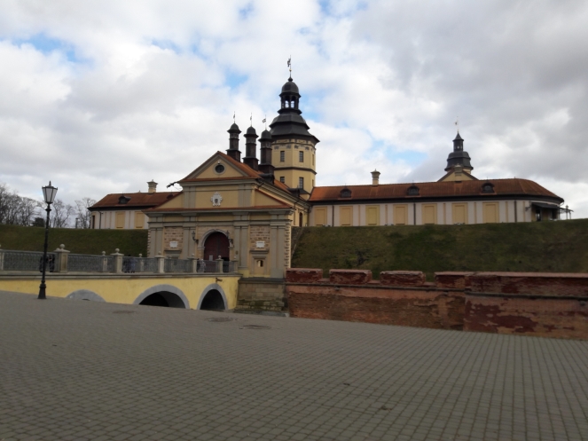 А после обеда в кафе со скромным названием «Сокровищница» полюбовались на Несвижскую ратушу, которая напомнила мне одновременно пожарную каланчу и церковь, и пошли в замок.
