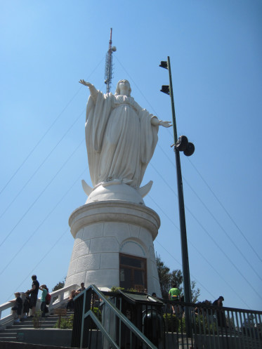 14-метровая статуя Девы Марии, с распростёртыми руками - аналог Христа на Корковадо в Рио-де-Жанейро. И тут у меня возникла проблема. За Марией какой-то умник поставил толи антенну, толи мачту какую-то. Она постоянно лезет в кадр. Отойдешь в другую сторону – ярчайшее полуденное солнце прямо в объектив.