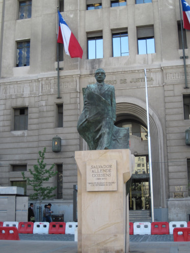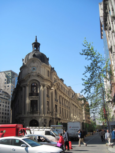 Наш путь лежал на знаменитую Ла-Монеда. Можно было проехать 2 стации на метро, но по пути находилось одно очень интересное здание. Поэтому мы пешочком прошли часть проспекта Avenida Libertador Bernardo O'Higgins (Авенида Генерал Либертадор Бернардо О'Хиггинс). Это главная магистраль Сантьяго, которую чилийцы называют La Alameda (Ла-Аламеда -Тополевая аллея). Когда-то здесь росли тополя (alamo — исп. «тополь»). Она проходит с востока на запад через центр большой городской зоны, длина 7,77 км, и в каждом направлении имеется до 5 полос движения.
