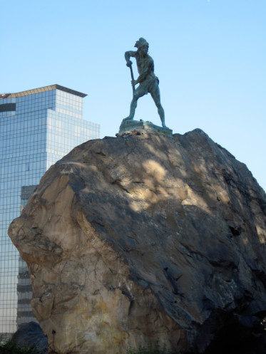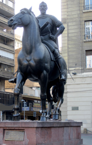 Одна из статуй на площади - конный памятник Педро де Вальдивии