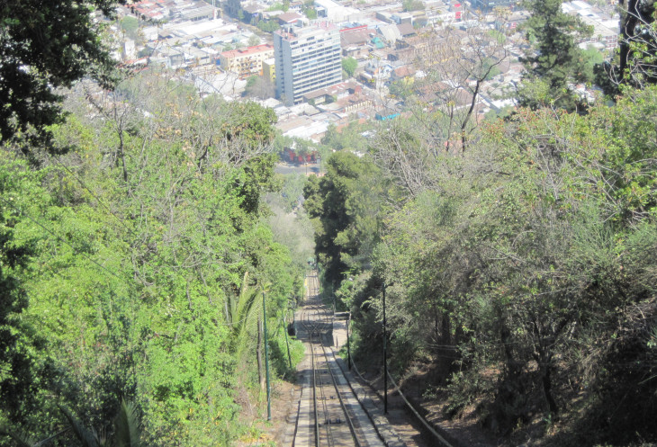 На вершину холма можно автомобилем, фуникулером или телефериком. Так в Сантьяго называют канатную дорогу. Конечно же, решили добираться туда именно этим способом. Тем более многие путешественники отзывались об этом очень восхитительно. Проехали на метро от Ла Монеда – до Лас Леонес