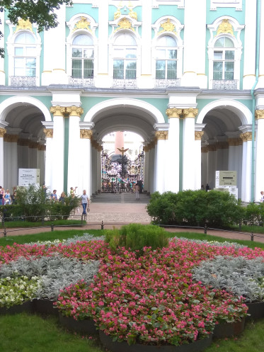 От замка переходим дорогу к Михайловскому саду с красивой решеткой ,где проходят фестивали ландшафтного дизайна "Императорские сады России".Сад граничит с филиалом Русского музея.Аккуратные дорожки,много зелени.И выходим прямо к Спасу на Крови.От него движемся налево и прямо ,и выходим к Казанскому собору.Далее остается пройти прямо по Невскому проспекту до Дворцовой площади с Эрмитажем ,открытым для посещений Главным штабом и Атлантами.