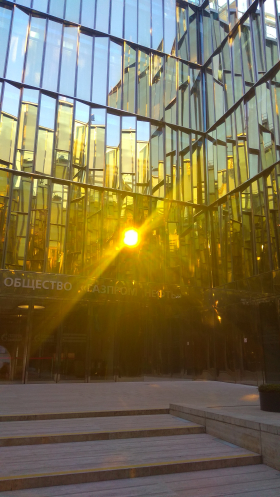 Рядом находится стеклянный двор-колодец бизнес-центра Quattro Corti ,по адресу Почтамская ул.3-5. В солнечный день выглядит волшебно,с переливами и отражением солнечных лучей,в окружении стен из стекла.