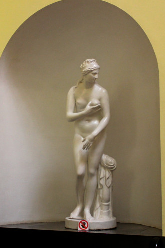 'Греческий дворик', главный вход со статуями Эскулапа и дочери его Гигеи; Киса Воробьянинов в фильме Гайдая милостыню просил именно здесь, кстати, хотя соответствующая статуя стоит в пятигорском 'Цветнике'... ну и к лучшему, не стоит портить классические формы таким содержанием