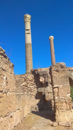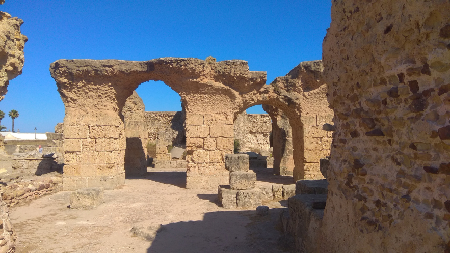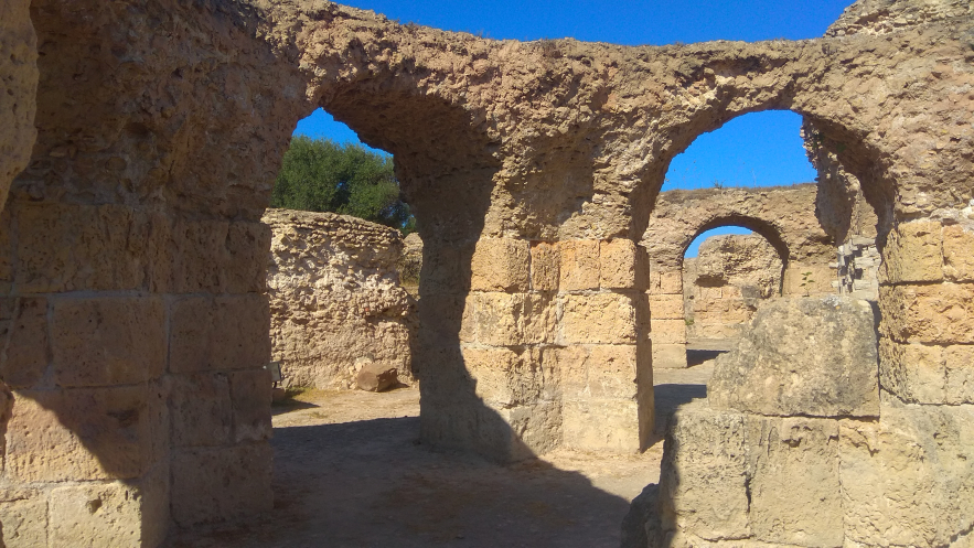 И руины древнего Карфагена 814 года ждут пытливых туристов.Тирская принцесса Элисса,прибывшая сюда захотела купить земли у местных племен.Ей разрешили взять столько земли,сколько покроет бычья шкура.тогда она разрезала шкуру на тонкие ремешки и очертила холм,где и посторила крепость.Разроссшийся город представлял угрозу Риму и был разрушен.Затем город захватили вандалы и потом он окончательно был уничтожен арабами,чтобы не представлять угрозу.