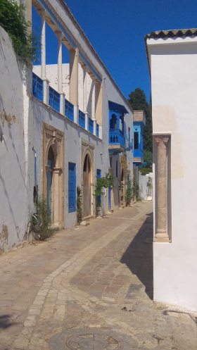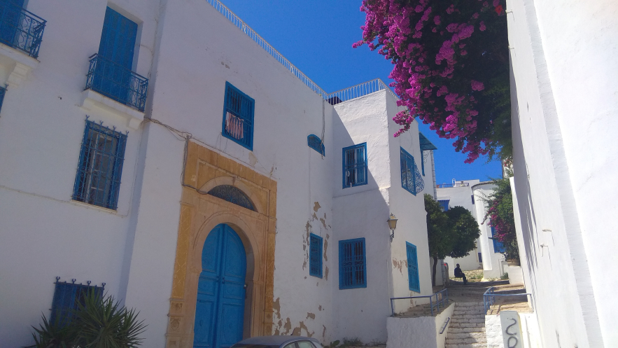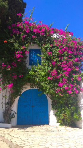 Также,здесь можно попасть в сказку или почувствовать себя,как на островах Греции,попав в изумительный бело-голубой город Сиди Бу Саид.Он назван в честь исламского проповедника 12 века.Население составляет всего 5000 жителей.В 18 веке османские наместники и зажиточные граждане стали строить здесь свои летние резиденции.Здесь жили и многие известные художники.Узкие извилистые улочки,открывающие панораму моря внизу,обилие цветов,бело-голубые домики и атмосфера полнейшего умиротворения.Что еще нужно для вдохновения?