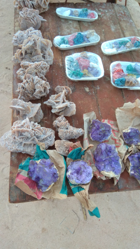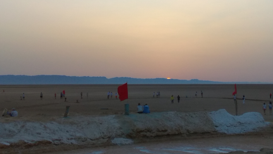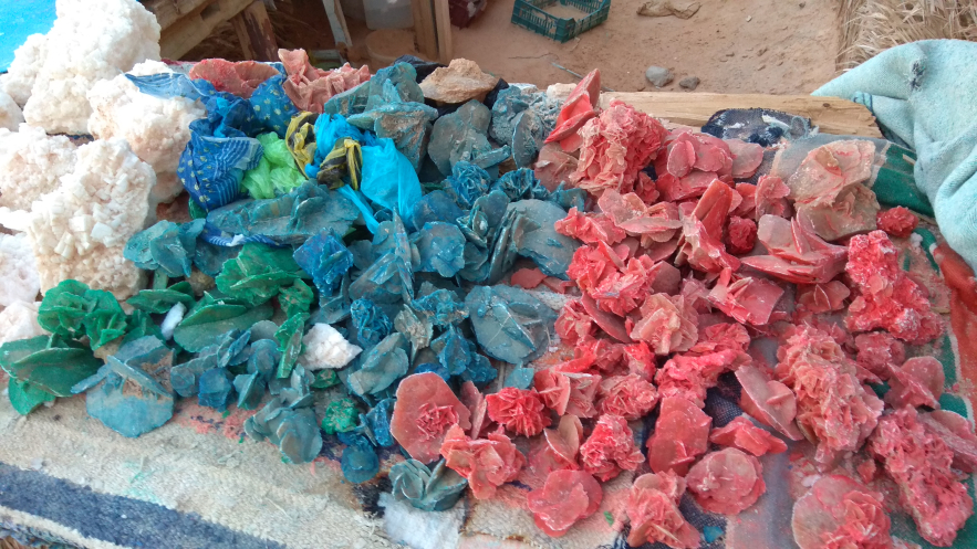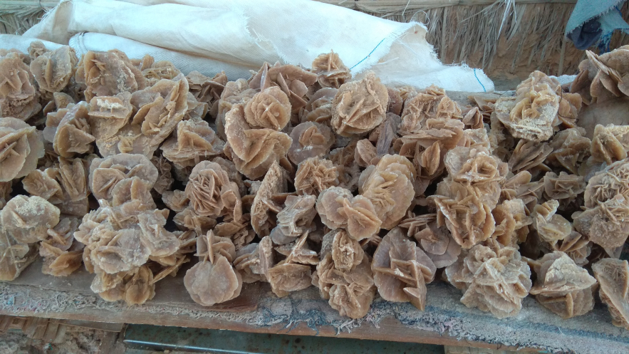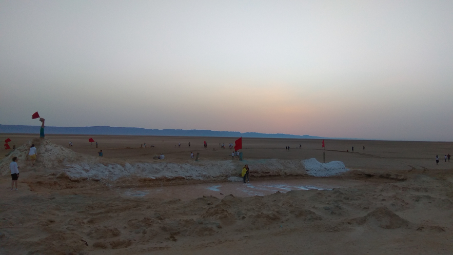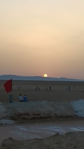 А встречать рассвет нас подняли в 3 часа ночи,и мы отправились на соленое озеро Эль Джерид.Вернее,озеро это только зимой,когда идут дожди,но соль там добывают круглый год. Мы наблюдали медленно выползающее солнце и меня охватывал восторг от этого зрелища. Ветер и дождь создают из глины и соли "розы пустыни" причудливых форм,местные раскрашивают их в разные цвета и продают ,как сувениры.
