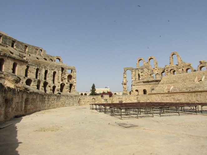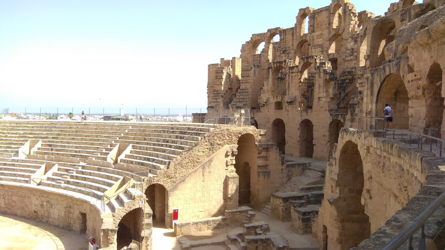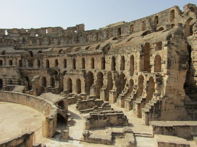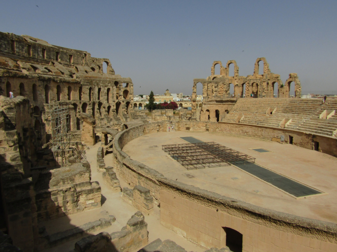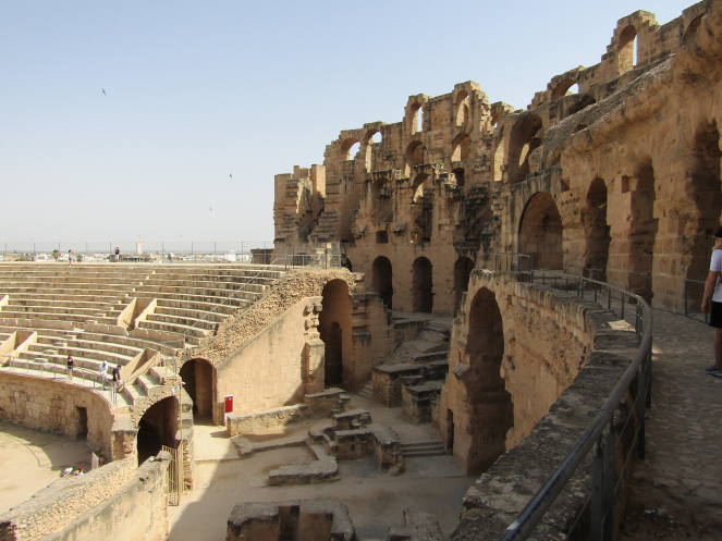 Первым городом по дороге был Эль Джем.Там находится Колизей.Четвертый в мире по величине и второй по сохранности.Кстати,до завоевания арабами Тунис был православным.И ислам здесь самый легкий в плане соблюдения,по сравнению с соседними странами.