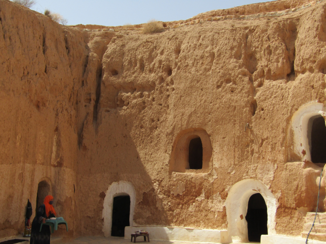 Коренные жители Туниса-берберы.Их еще называют троглодитами,потому что они жили в пещерах,вырубленых в местных горных породах.Многие живут там до сих пор,это в основном пожилые жители,которые не хотят покидать насиженные места.В пещерах прохладно ,есть все необходимое.Колодец у дома для сбора дождевой воды.Грунтовых вод здесь нет.