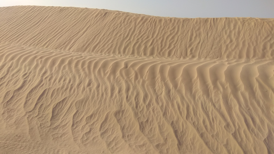 Этот самый джип устроил нам целые американские горки по барханам.Девочки визжали,мальчики корректно отмалчивались.Особенно впечатлительно было,когда машина замирала на вершине бархана ,делая паузу,а потом стремительно скатывалась вниз.Можно было удивиться мастерству водителя,который умудрился не перевернуть машину выделывая пируэты,заезжая на вертикальные барханные горы и скатываясь задом и почти ветрикально боком проезжая по высоким барханам.Очевидно,это было частью поездки.