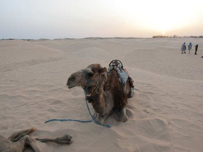 Деревянная конструкция ,вместо стандартного лошадиного седла ,была очень жесткая.Пара синяков ,на память,у меня осталась за столь непродолжительную поездку) Затем мы провожали солнце среди барханов и верблюдов.Солнце зашло скромно,не порадовав нас буйством красок,в отличие от морских побережий.