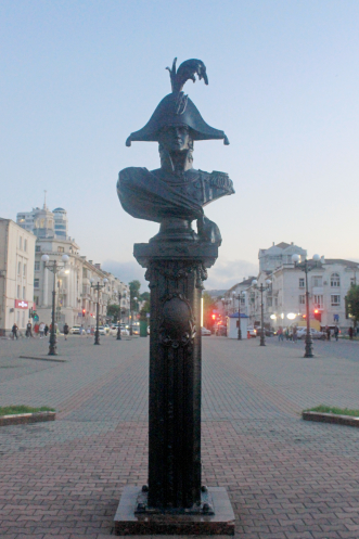 Впереди Форумная площадь города, с памятником отцам-основателям русского Новороссийска: Раевскому, Лазареву и Серебрякову. Про Серебрякова, кстати, вообще отдельная интересная история, оказывается. Он, Лазарь Маркович, – первый русский адмирал армянского происхождения, от рождения носивший имя Казар Маркосович Арцатагорцян. Много про него писать не буду, хотя заслуги его перед Отечеством велики, но и информации в открытых источниках достаточно.